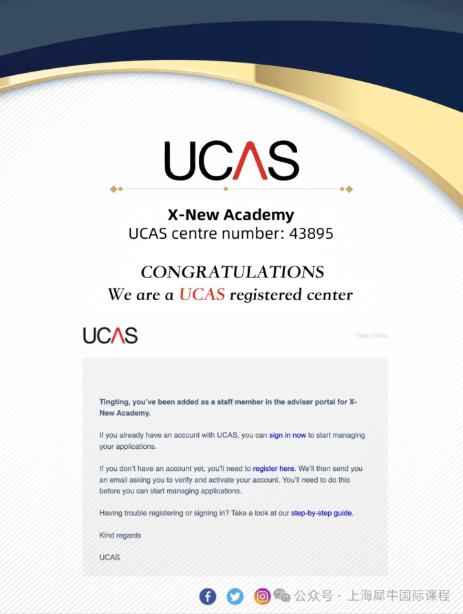 作为UCAS官方注册中心,犀牛教育可为在读全日制学员出具推荐信和预估成绩,让犀牛全日制学生更受院校认可与青睐!