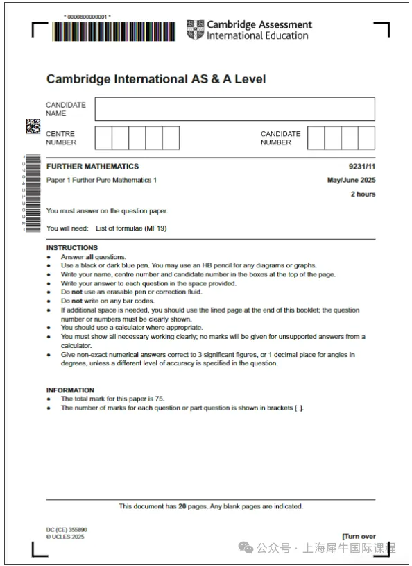 2026年Alevel夏季大考不足两个月。其中,A-level的进阶数学比普通数学难得多,为了帮助大家刷题备考,我们整理了2025年ALevel数学CIE高数FP1、FM真题及详细答案。需要的同学在线领取
