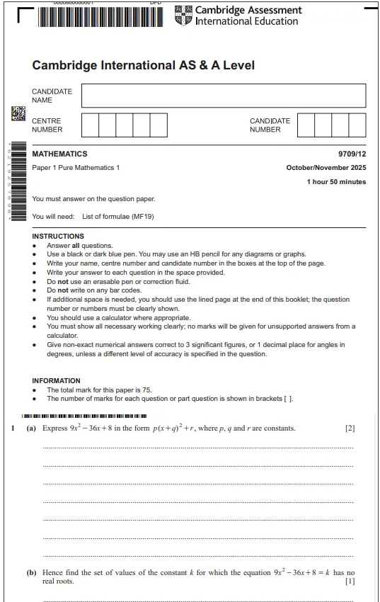 2025年10月CIE高数FM真题答案