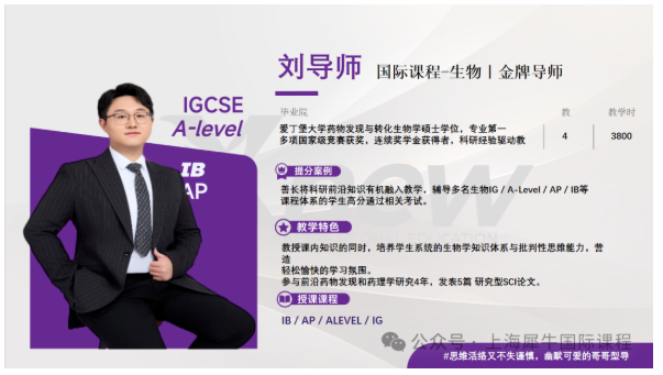 提分案例:善长将科研前沿知识有机融入教学,辅导多名生物IG/A-Level/AP/IB等课程体系的学生高分通过相关考试。