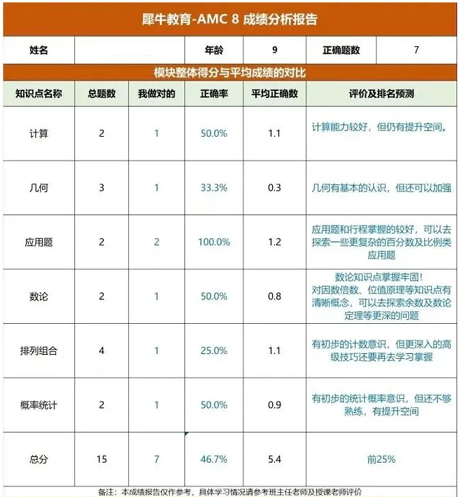 目标:系统学习AMC8基础知识点,争取首次参赛获得全球荣誉奖(15分及以上),基础好的孩子可以冲更高的目标分。
