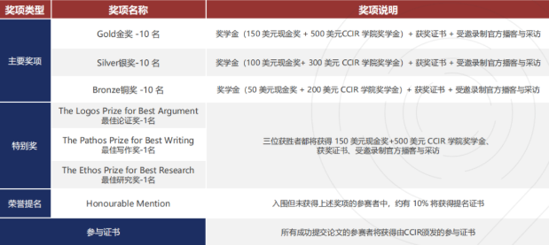 设Winner、Second Prize、Third Prize奖项,获奖者可获得奖学金(最高10000美元),并受邀参加牛津线下学术会议与颁奖晚宴,获奖证书是顶尖名校申请的核心加分项。
