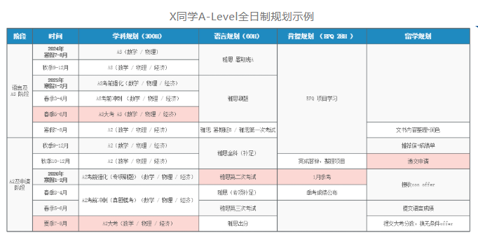 ALevel脱产机构:如果是在机构脱产学习的话,很多都是一对一课程,客观上会集中孩子的注意力,将全部精力投入到学习之中。国际学校每周约12小时A-level 课程,而脱产学习可将课时提升至 25-30小时,用1年时间完成常规2年的学习量,胜在效率高。