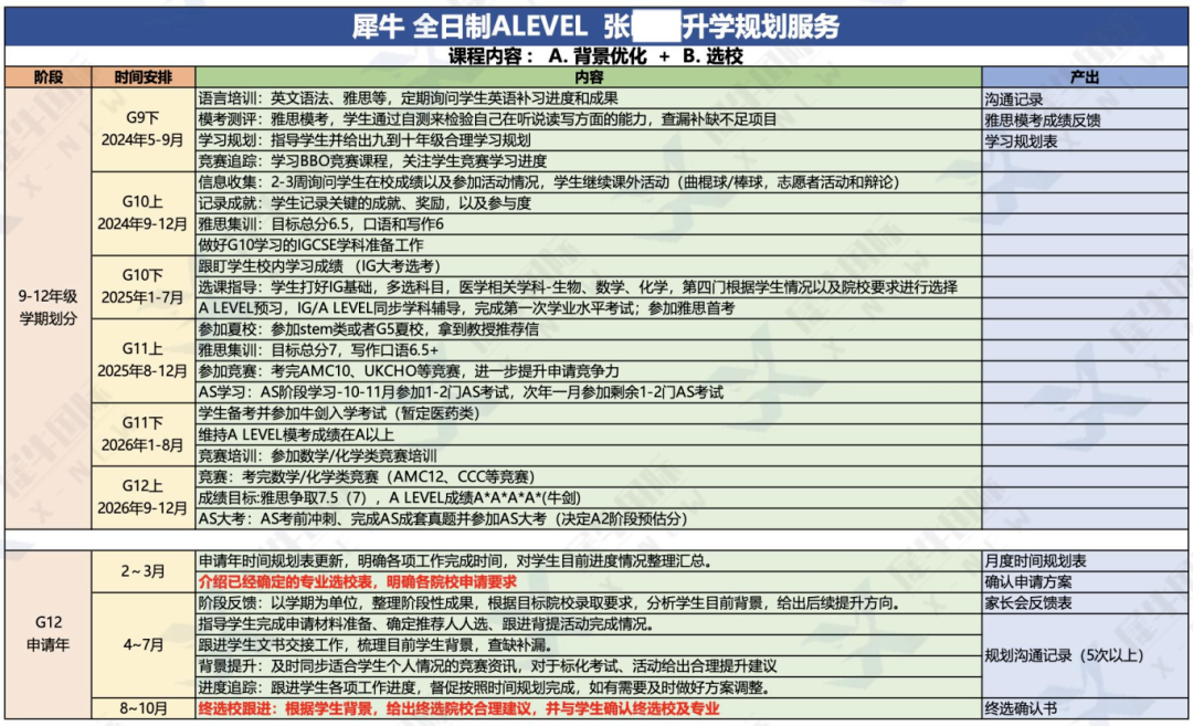 ①院校规划:根据学生的成绩、兴趣和职业规划,帮助选择合适的院校和专业;协助学生制定申请时间表,确保在规定的时间内完成申请材料的准备;