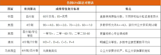 不同国家和院校采用的GPA标准存在显著差异,因此,在申请国外学校的时候需要换算成对方习惯的形式。