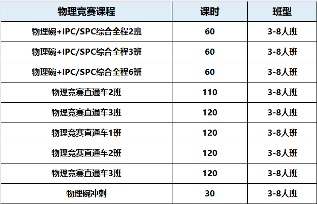 犀牛物理竞赛直通车(物理碗/ BPHO/PUPC /SIN)培训课程采用体系化教研的专业教材,将竞赛知识点与国际课程知识点重新整合,以2个年级的维度划分班型,针对8-11年级学生的竞赛培训各有侧重点。