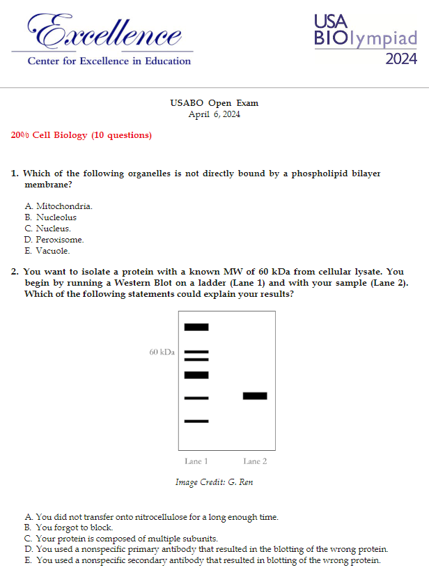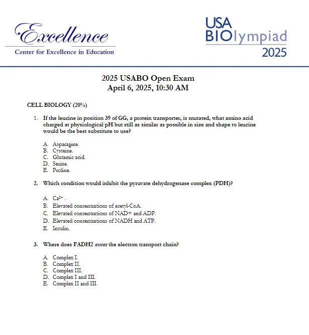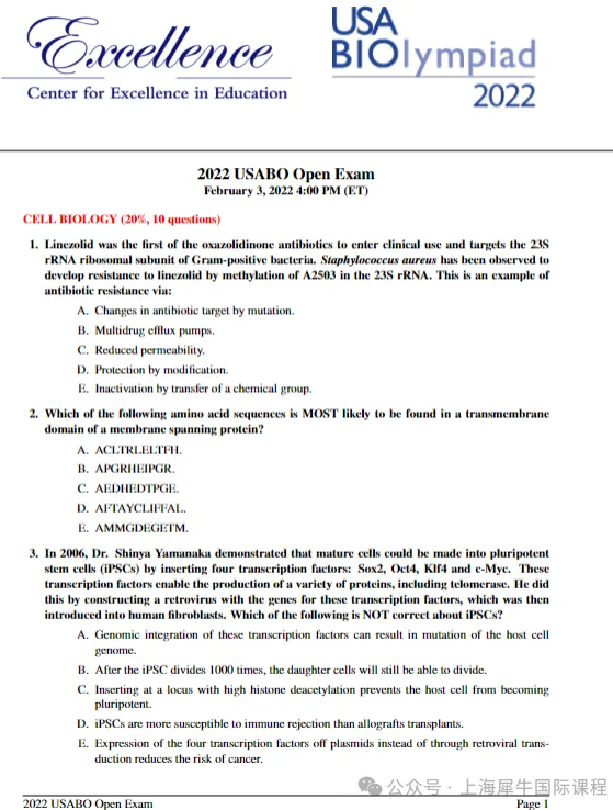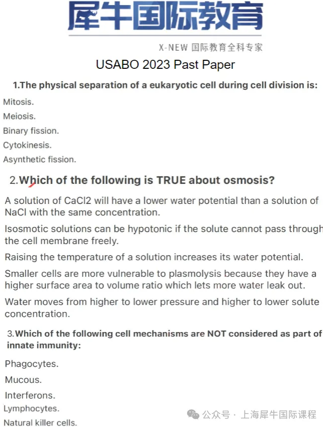 USABO采用个人笔试形式进行考核,无实验操作环节