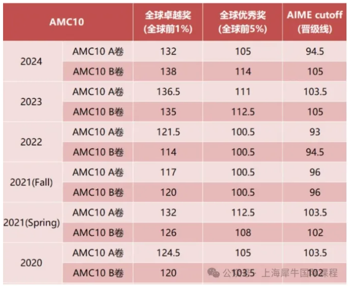 AMC10竞赛获奖难度有多高,可以结合近5年分数线来摸清真实难度。下面整理了 2020-2024 年核心数据,可以直观感受下: