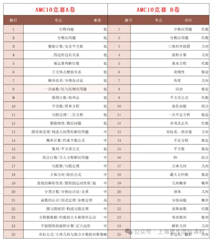 AMC10考察内容涵盖初等代数、基础几何学、初等数论和概率问题等多个方面,备考学生需要系统学完四大板块内容并构建知识体系,低年级学生至少补充高一数学学习。
