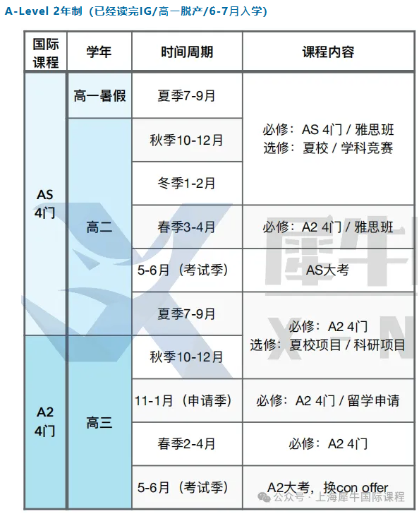 A-Level 2年制(已经读完IG/⾼⼀脱产/6-7⽉⼊学)