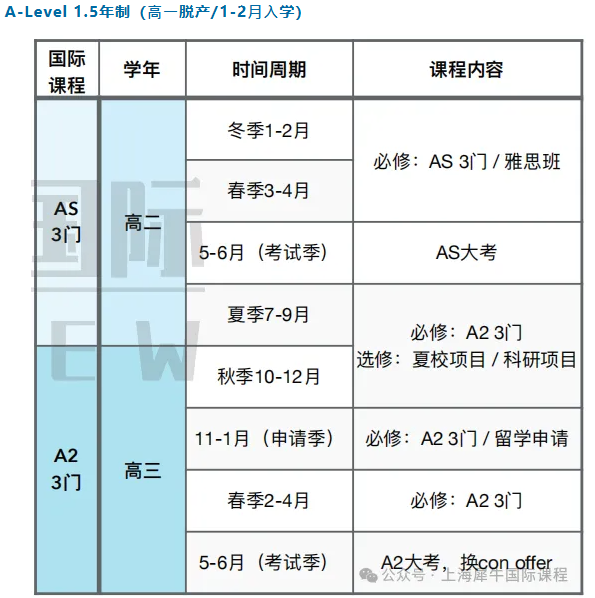 A-Level 1.5年制(⾼⼀脱产/1-2⽉⼊学)