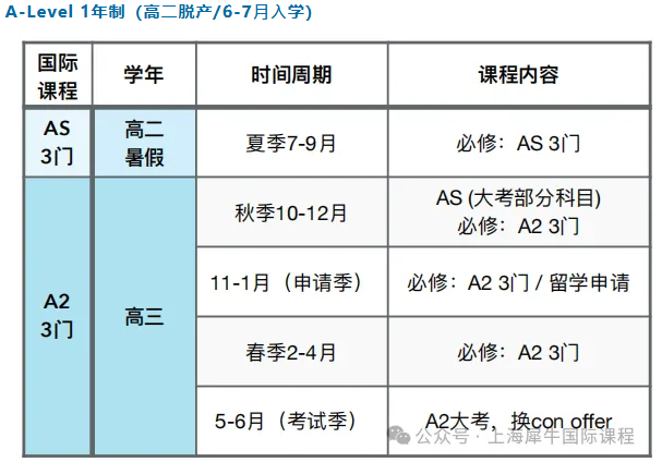 A-Level 1年制(高二脱产/6-7⽉⼊学)