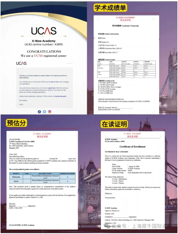 犀牛是UCAS官方注册中心,预估分、成绩单、在读证明都可开开具,且英国院校也对我们很信任。