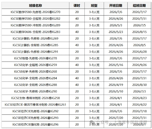 北京犀牛IGCSE五月大考课程新班已开!线下校区的海淀,国贸,顺义,3-8人小班+1对1、线上线下同步、3V1督学,2026年IGCSE迎来多项考纲与考试形式调整,核心变化集中在英语文学开卷、数学考试结构重平衡、科学科目实践强化三大方向,同学们需要注意!
