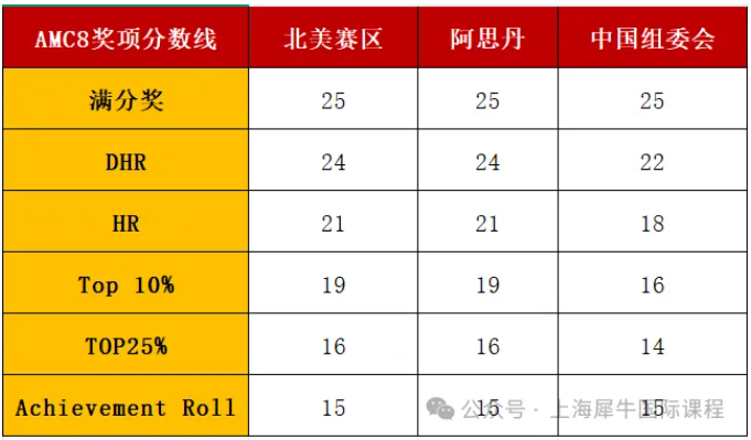今年AMC8中国区组委会单独划线,可能是家长普遍反映题目较难,阿思丹版本和美国赛区版本分数线保持一致。