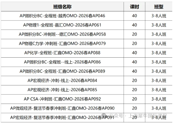 01 犀牛AP课程开设科目
