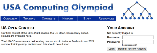 前三场是月赛,后一场是公开赛,本质没有什么区别,所有学生都可以参加这4场。有的区别在于按照惯例,公开赛的难度会比月赛难一点。另外,美国信息学国家队会在公开赛里挑人,成绩突出的,有机会被挑选去参加集训(仅对于美国本土学生)。