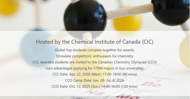 加拿大化学竞赛(CCC)由加拿大化学学会主办,是加拿大顶尖化学赛事,也是加拿大化学奥林匹克(CCO)的预选赛。对于想申请材料科学、纳米技术、环境工程等需要化学背景的专业,CCC是极具含金量的加分项。
