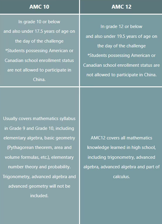 AMC12:12年级及以下且参赛当天不超过19.5岁