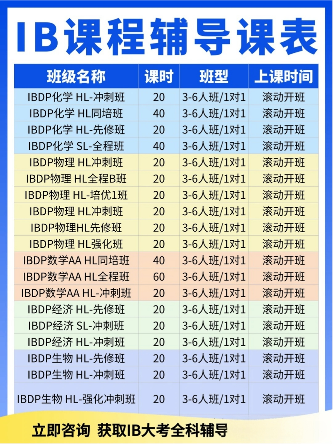 IB培训课程科目:IB数学、IB物理、IB化学、IB生物、IB经济、IB计算机、IB商务、IB中文、IBEE、IBTOK等等;