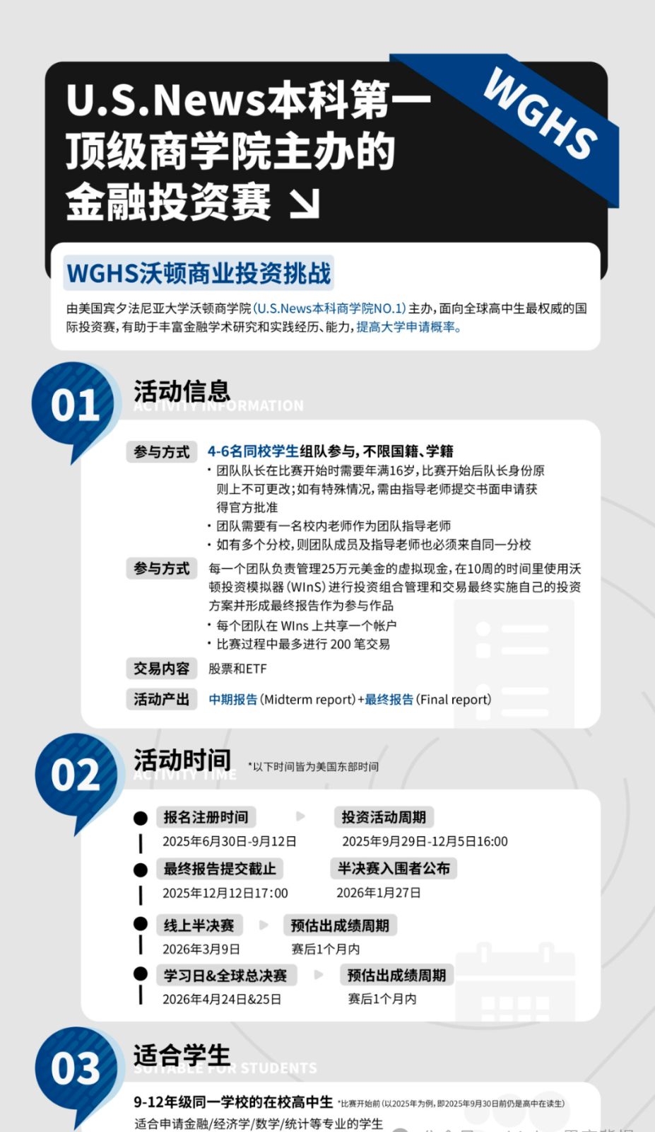 推荐理由:沃顿商赛的考察内容主要是投资分析、股票 / 基金策略、宏观经济判断,和ALevel经济中宏观经济周期、利率、货币政策、金融市场、Risk and return等考点对应,但需要注意的是沃顿商赛更侧重金融能力考察,对申请经济 / 金融专业非常加分。