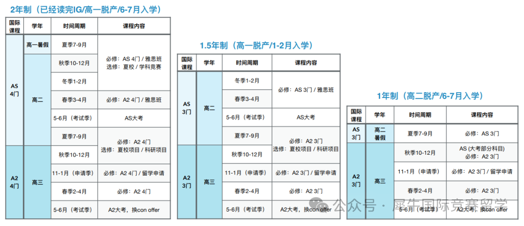 1. 2 年制(已读完 IG / 高一脱产,6-7 月入学)