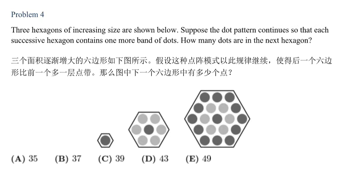 全部为选择题,和国内奥数对比门槛稍低,碰到不会的问题还有20%的正确概率,如下是AMC8真题的实例: