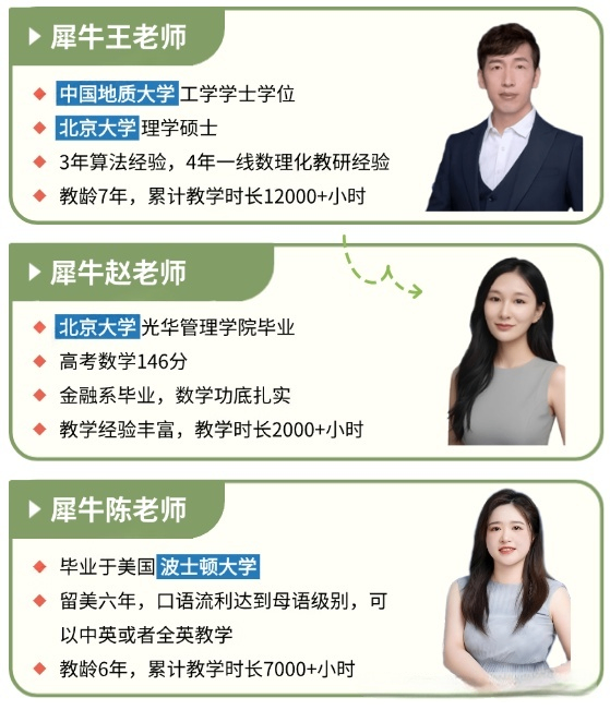 犀牛教育针对不同基础的备赛学生,分层开设了Pre-AMC8课程、AMC8基础班、强化班及冲刺班,通过“三师一体”的精细化教学服务,全程陪伴孩子夯实基础、强化能力、冲刺高分,助力斩获竞赛奖项!