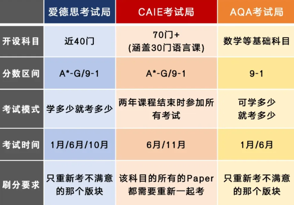 IGCSE课程热门的三大考试局分别是CIE考试局,爱德思考试局,AQA考试局。