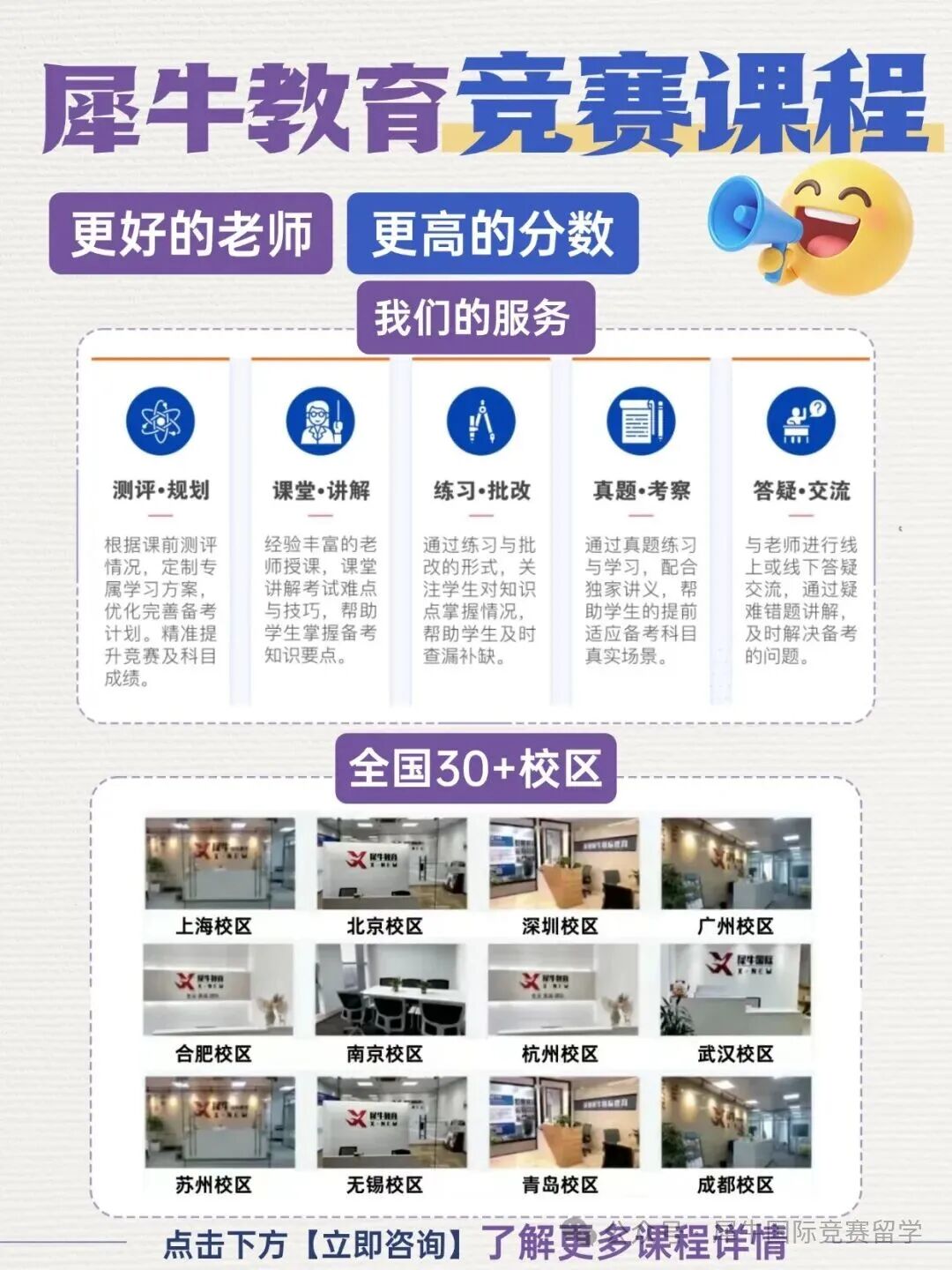 关键目标:7-8 年级低龄参赛积累经验,9-12 年级针对性冲刺,可搭配物理碗、USACO 等赛事,打造多元竞赛背景