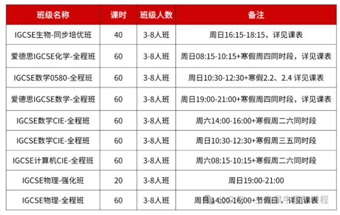 犀牛IGCSE课程辅导课程班型:IG衔接先修班,IG强化班,IG冲刺班,IG全程班都有。