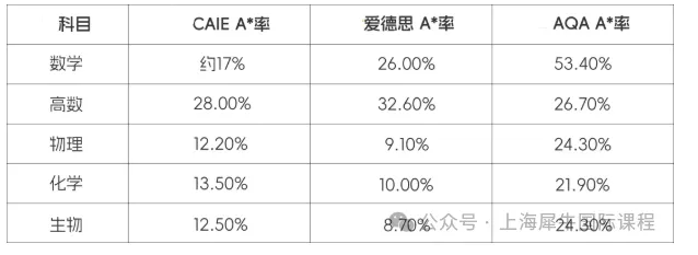 以数学为例,AQA的A*率(53.4%)是CAIE(约17%)的三倍以上。这意味着**选择哪个考试局,某种程度上决定了你拿A*的难度起点。