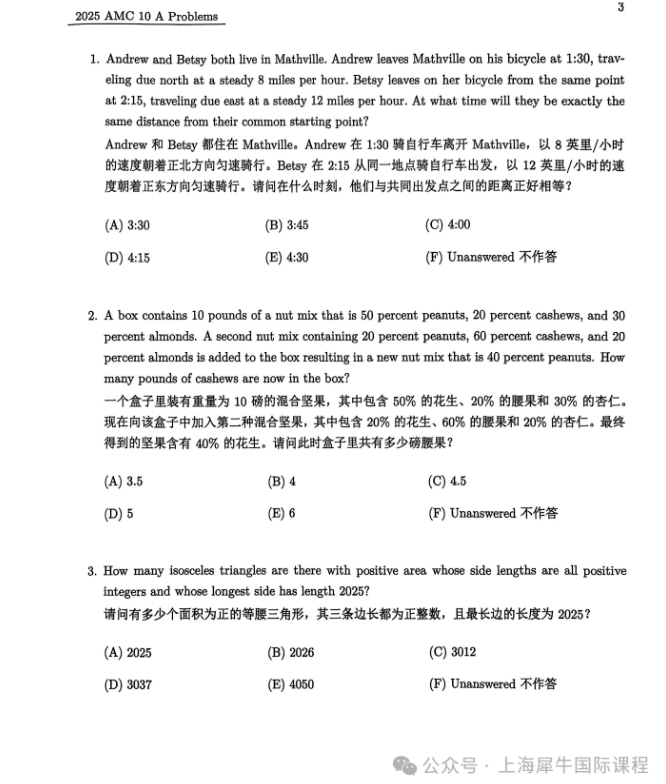为了方便大家查漏补缺,ZOE老师整理了2025年AMC10数学真题试卷及解析,中英文和英文版,包含A卷和B卷。