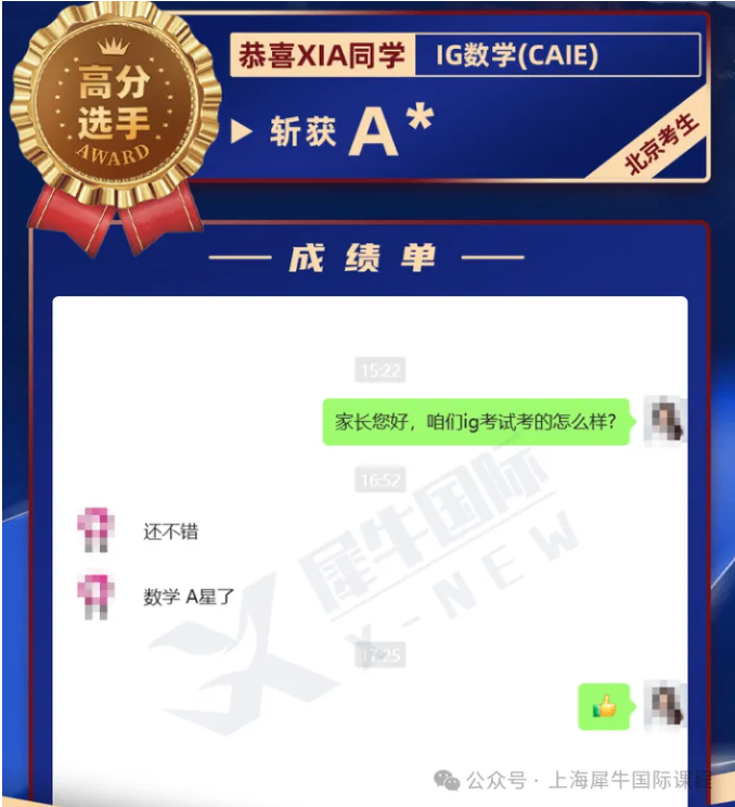 夏同学在CIE考试局中,IG数学获得A*成绩