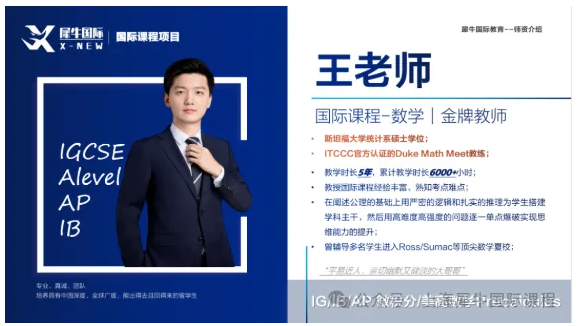 ③教学时长4年,累计教学时长6000+小时,熟悉、ALEVEL、AP、IB等各类数学国际课程;