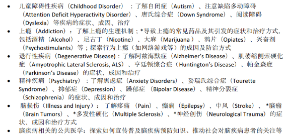 BrainBee竞赛围绕与大脑相关的基础知识,鼓励学生探究式学习,考察的内容主要包括大脑结构、大脑功能、大脑疾病等。