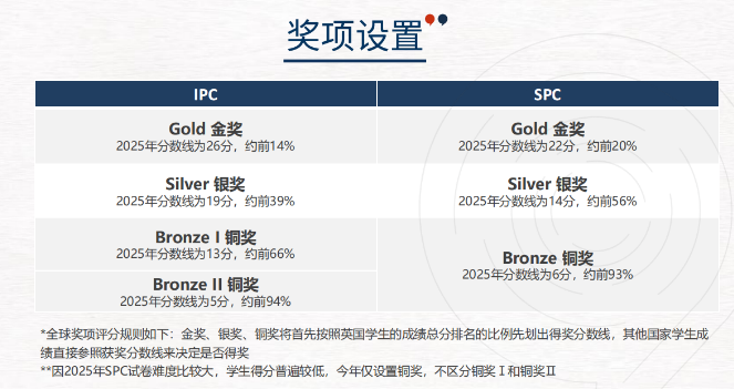 前置赛怎么选:9-10年级考IPC,10-11年级考SPC。拿金奖才能第一批锁定BPhO名额,银铜奖可能因报满而无法参赛。