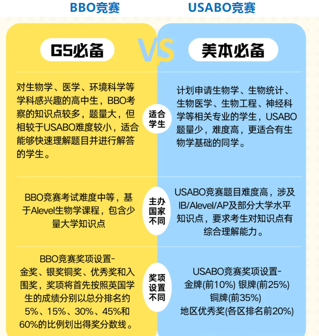 如果你想申请英联邦G5名校,那么就参加BBO竞赛,如果你想申请美本学校,那边USABO竞赛更适合!简单来说BBO竞赛更重基础广度,USABO竞赛更重深度综合,两者的申请赛道和能力要求完全不同,所以今天小编就为你彻底理清思路,选出最适合自己的赛道:
