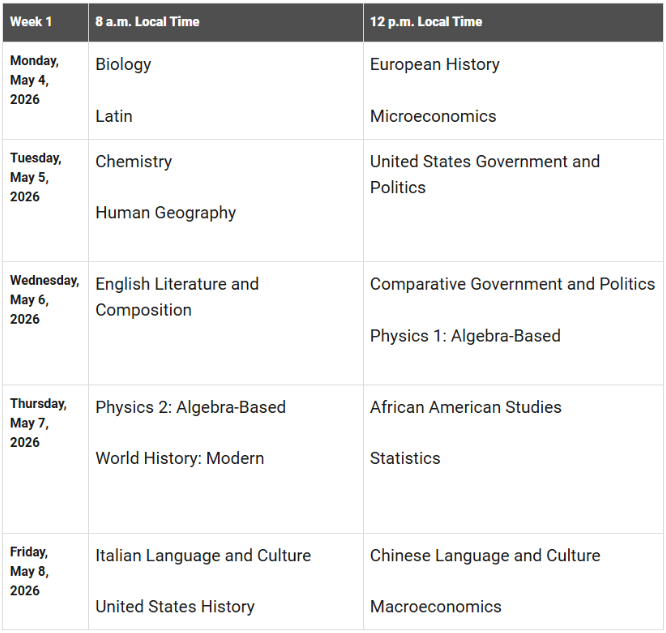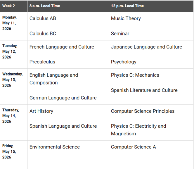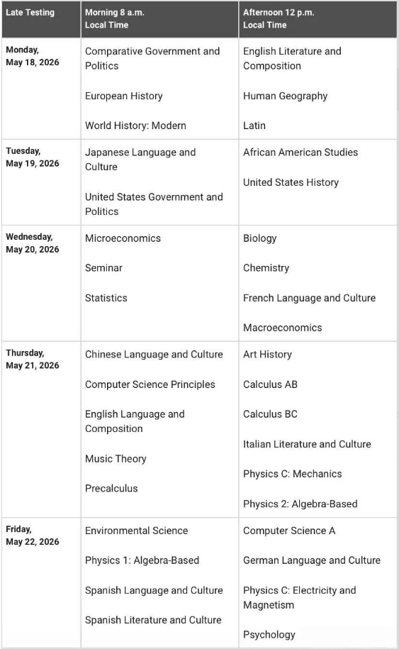2026年AP考试时间安排
