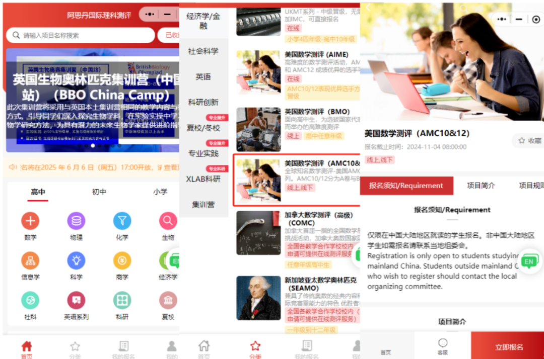 适用人群:合作学校学生(学校不组织时)