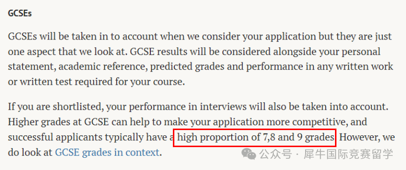 牛津大学十分重视申请者的 GCSE 成绩,其官网在入学要求中明确说明,GCSE 成绩会结合个人陈述、学术推荐信、预估成绩,以及专业要求的书面任务或笔试成绩等材料综合评估。