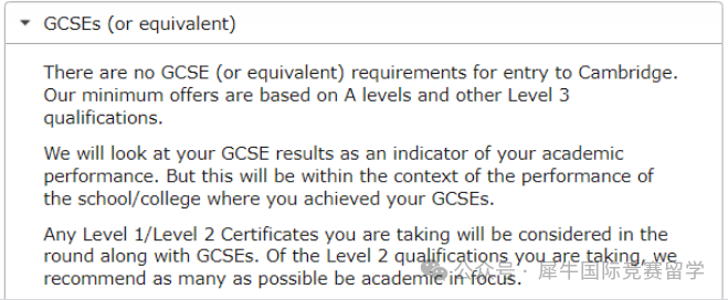剑桥大学并未对 GCSE 成绩与科目作出明确规定,但该校仍将 GCSE 成绩视作重要的参考依据。