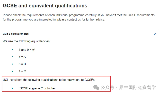 UCL 要求所有申请者的 GCSE 数学与英语成绩不低于 4/C 等级,热门专业会设置更高标准,部分专业还会指定所需的 GCSE 科目。