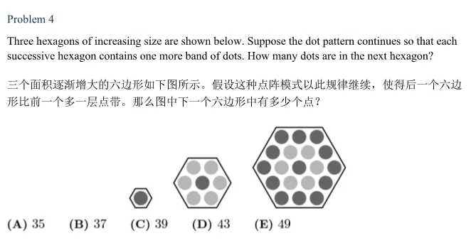 全部为选择题,和国内奥数对比门槛稍低,碰到不会的问题还有20%的正确概率,如下是AMC8真题的实例: