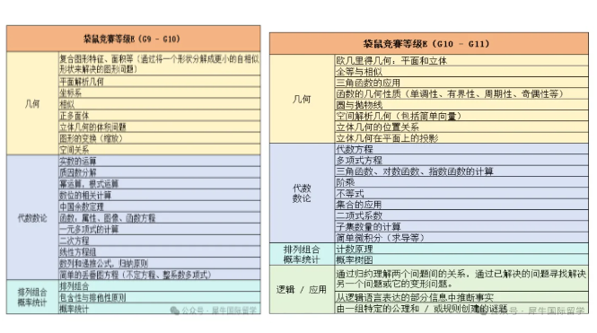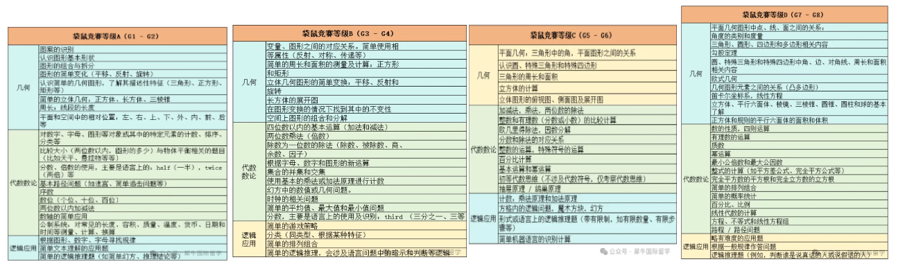 袋鼠数学竞赛总共有6个级别(A-F)每个级别考点均有差异