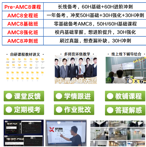 这是AMC8竞赛进入中国以来历史性的一次调整,打破了延续多年的“全球统一标准”2026年AMC8中国赛区分数线: 中国区试卷虽独立命题,但证书由美国数学协会(MAA)统一制作颁发,效力与北美赛区完全等同,不影响大学申请、国际学校择校,核心是保障亚洲赛区竞赛的公平性,从源头杜绝了时差泄题风险。 但要注意的是中国区试卷难度较美版有所提升,想拿到同等级奖项,孩子需要突破的“分数关卡”更严苛。 如果说分数线是明面上的挑战,年龄放宽就是藏在背后的“隐形杀招”! 往年超过14.5岁的学生,只能报考AMC10竞赛;如今年龄上限放宽至15.5岁,大批按AMC10难度备考的学生,全部回流AMC8竞赛赛场。 这类考生拥有极强的竞争优势:知识点深度远超常规AMC8竞赛考生、解题思路成熟、做题速度更快,对低龄考生来说,就是实打实的降维打击。 1. AMC8竞赛的参赛基数大幅暴涨,竞争内卷翻倍; 2. 前1%、前5%的获奖分数线持续推高,孩子拿奖难度暴涨数倍! 现在正值2026年4月,距离2027年1月AMC8竞赛考试还有9个月,是备考的黄金窗口期。结合改革后的难度、竞争变化,我们为不同基础的孩子定制了4阶段备考路线,避开备考误区,精准对标中国区独立卷考点! 1. 系统梳理四大核心模块:代数、几何、数论、组合,覆盖AMC8全部高频基础考点; 2. 同步衔接校内知识点,针对中国区命题特点,补充校内未覆盖的竞赛拓展知识; 3. 刷2010-2020年经典真题,只做基础题(1-15题),保证基础题正确率≥90%; 1. 专攻16-20题中档压轴题,训练竞赛思维,学习进阶解题技巧; 2. 重点研究2026年中国区独立卷真题,摸清中国区命题规律、难度分布; 3. 加入少量AMC10入门题型训练,应对大龄考生的降维竞争,提升解题上限; 1. 整套刷近年真题+模拟卷,严格按照考试时间(40分钟)完成,训练时间分配; 2. 针对性突破压轴题难点,目标冲刺TOP5%(18分)、TOP1%(22分)分数线; 3. 复盘所有错题,总结解题套路,补齐知识短板,避免重复踩坑; 4. 优化答题策略:前10题快速稳分、11-20题精准作答、21-25题选择性攻坚。 2. 每周1次全真模拟考,适应考试节奏,调整作息; 犀牛国际教育犀牛AMC8精品小班课,3-8人,线上线下,中英双语教学,正在热招! 从Pre-AMC8长线备考,到零基础基础班、进阶强化班、真题冲刺班,还有一年冲奖全程班,不同基础都能精准匹配! 自研教材+清北名师天团授课,课后作业批改、学情跟进、定期模考、答疑全解惑!