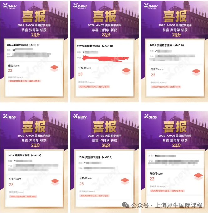 犀牛教育重视师资团队建设,授课老师均有3年+以上竞赛授课经验,帮助上千名学生拿到AMC8竞赛高含金量奖项。2026年,犀牛就有获得全球前1%/满分奖项的有55位学员,培训成果优异,效果看得见!
