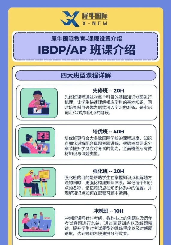 IB体系的同学快进入5月大考了,IB课程的难度很高,很多同学平时就没有学明白,考前冲刺也没有头绪,找专业靠谱的国际课程老师辅导,真的很重要,犀牛设置了IB培训课程,1v1个性化定制学习方案,预习、同步、冲刺多种教学拿高分省时省心,无痛拿下45分!
