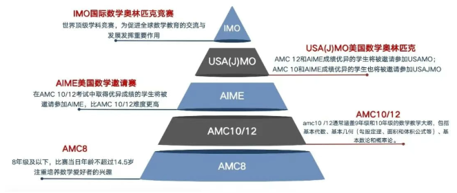 中国学生主要参加的是AMC8、AMC10、AMC12和AIME,覆盖从小学到高中的数学能力测试。其成绩被全球顶校广泛认可,尤其是晋级AIME(美国数学邀请赛)的选手,更受名校青睐。