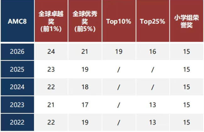 AMC8难度低于校内初中数学,侧重基础应用,对标国内小学高年级奥数和初中数学基础拓展题,难度适中,适合初次接触竞赛、培养数学兴趣的学生,易拿奖,无晋级压力。